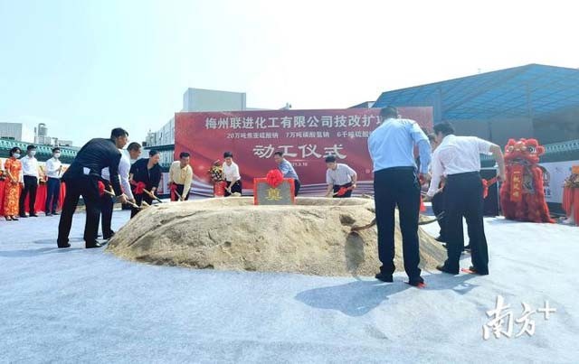 梅州聯(lián)進(jìn)化工有限公司技改擴(kuò)建今日動(dòng)工,建成后年產(chǎn)值預(yù)計(jì)達(dá)6億元 3月18日,梅州聯(lián)進(jìn)化工有限公司舉行技改擴(kuò)建動(dòng)工儀式。該項(xiàng)目工程范圍包括新建生產(chǎn)車(chē)間6棟、倉(cāng)庫(kù)4棟、辦公樓1棟和宿舍樓1棟,總計(jì)23081平方米,項(xiàng)目將在原址占地60畝上改建,總投資1億元,分三期進(jìn)行。