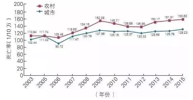 依據(jù)第六次人口普查數(shù)據(jù),2015年死于腦血管病的城鎮(zhèn)居民為85.36萬人,農(nóng)村居民103.49萬人?傮w上看農(nóng)村地區(qū)腦血管病死亡率高于城市地區(qū)。進一步分析表明,我國腦卒中死亡率下降的主要因素可能有以下幾種:1、中國整體醫(yī)療保障的改善;2、臨床診斷和救治技術(shù)的進步;3、城市居民腦卒中發(fā)病率下降;4、卒中防治知識水平的普遍提高。經(jīng)濟狀況與健康知識會影響患病率與死亡率:卒中患病率和不同教育水平呈負相關(guān)關(guān)系,即小學和以下文化卒中患病率最高,大專及以上最低。